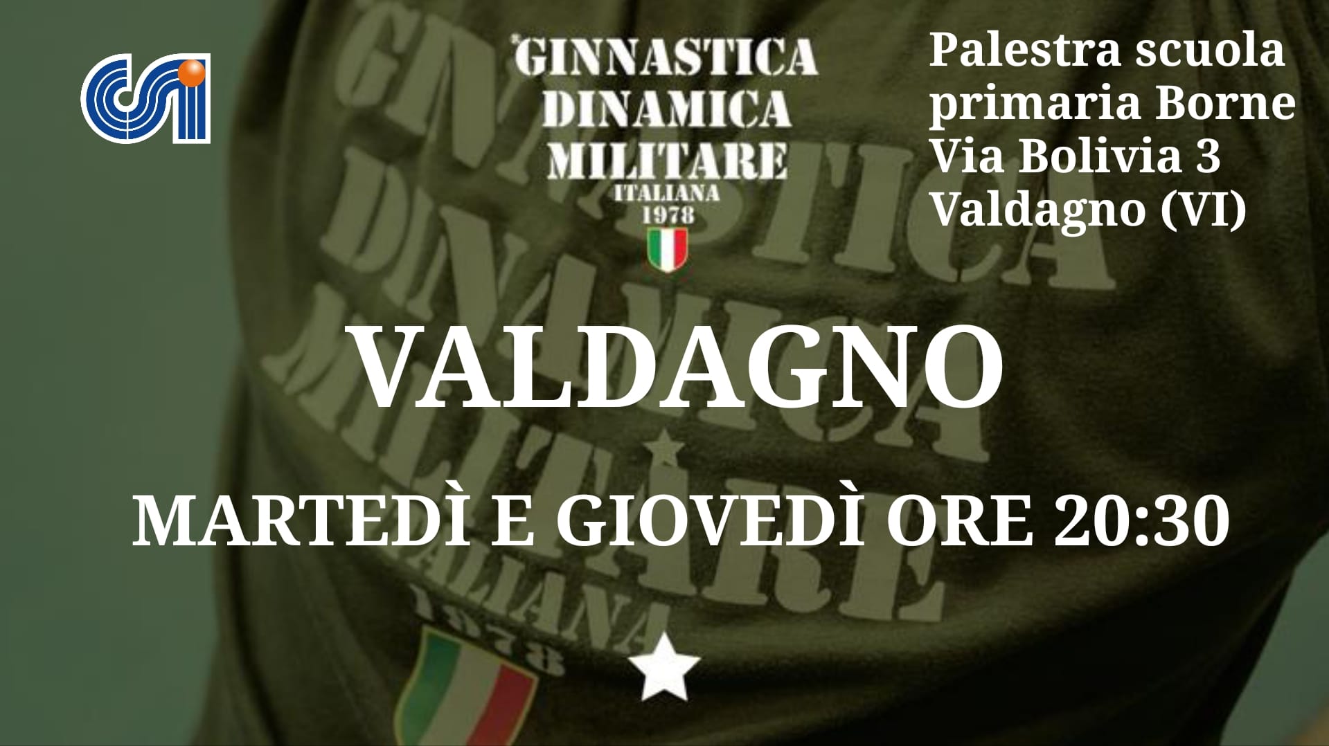Il corso di Ginnastica Dinamica Militare si svolge presso la palestra della scuola primaria “Borne” di Valdagno (Vicenza).